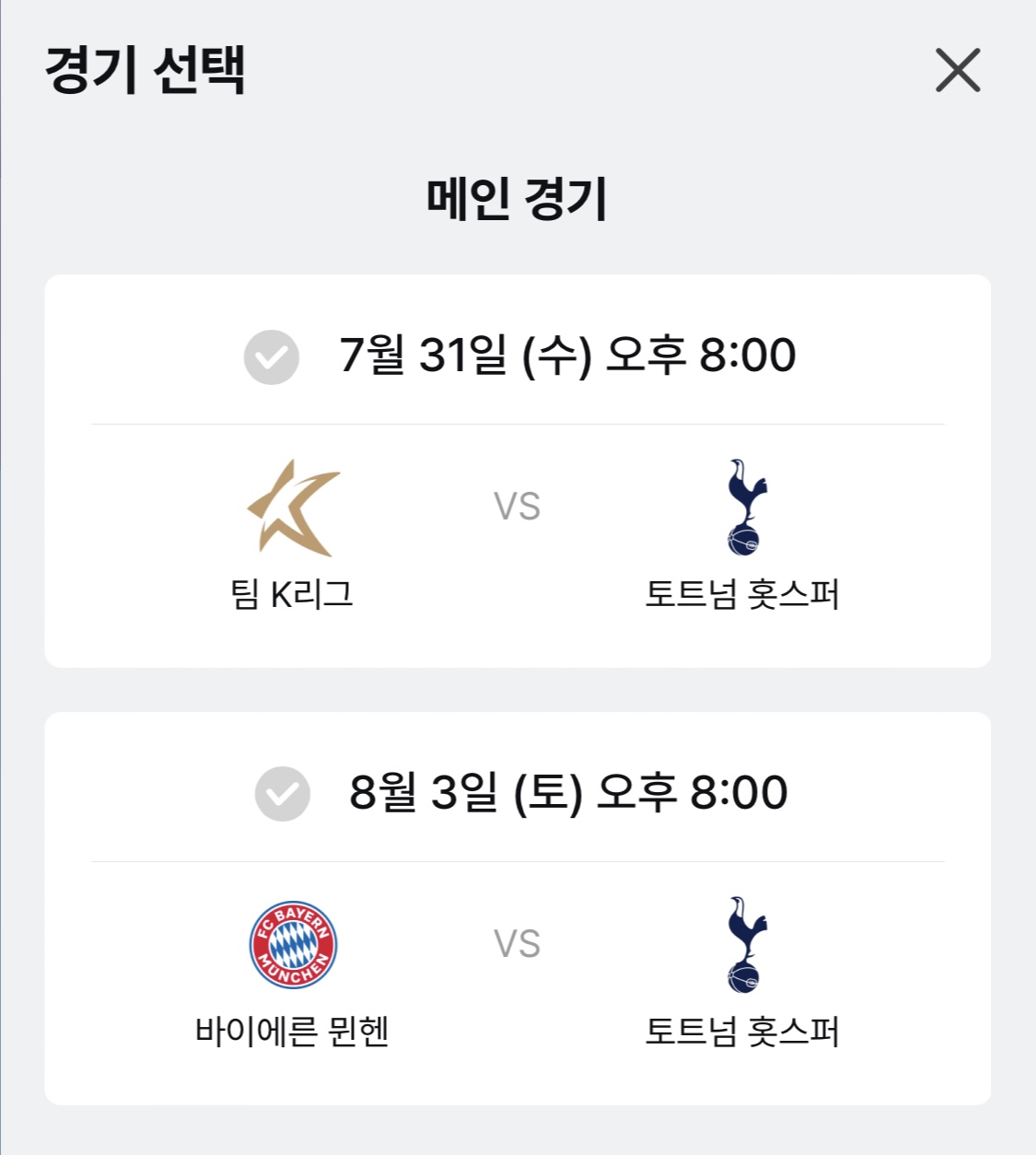 토트넘 핫스퍼 vs k리그 올스타 팀