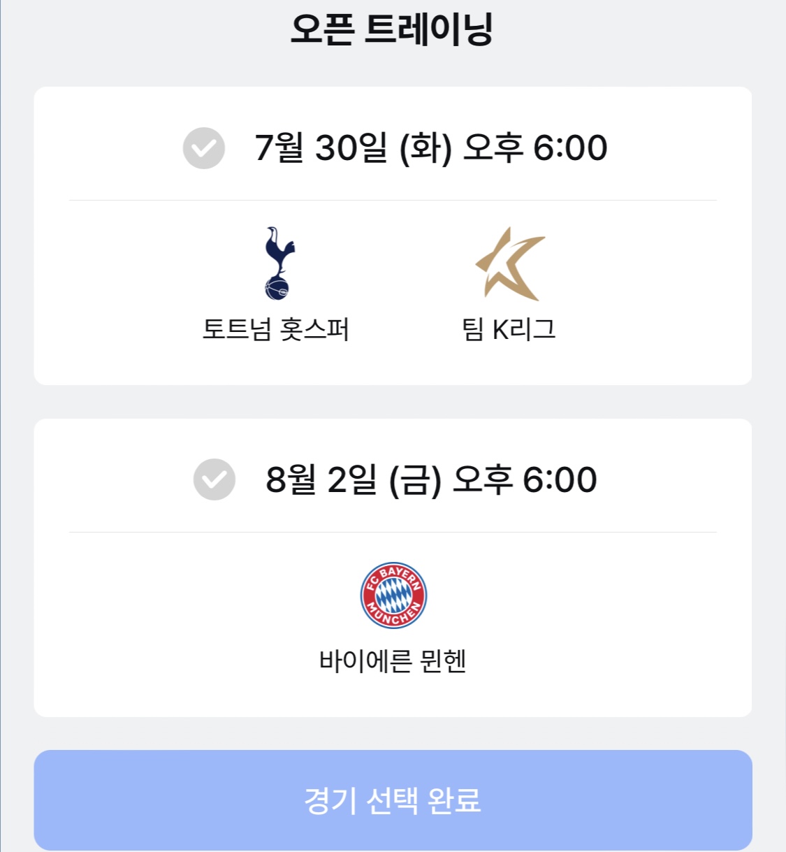 4. 그럼 '경기 선택'과 '오픈 트레이닝' 중 선택 할수 있는 것들이 나온다. 이 중에 자기가 사고 싶은 것 하나 선택